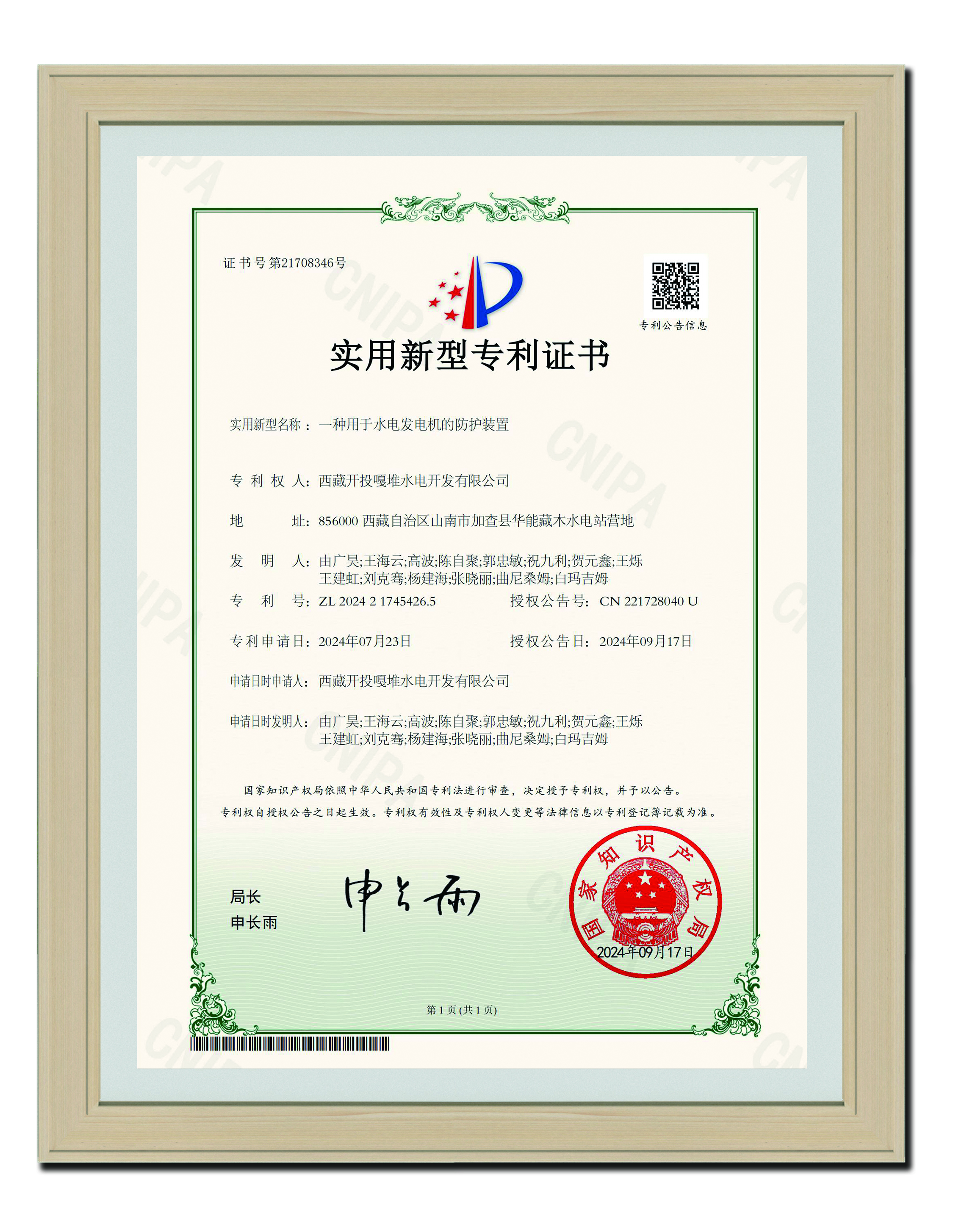 2024-09-17 實(shí)用新型專(zhuān)利證書(shū)_一種用于水電發(fā)電機(jī)的防護(hù)裝置