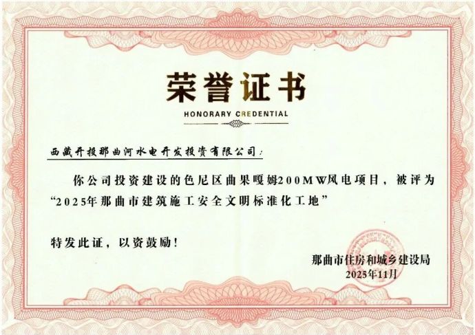 喜報(bào)丨色尼區(qū)曲果嘎姆風(fēng)電項(xiàng)目榮譽(yù)+1