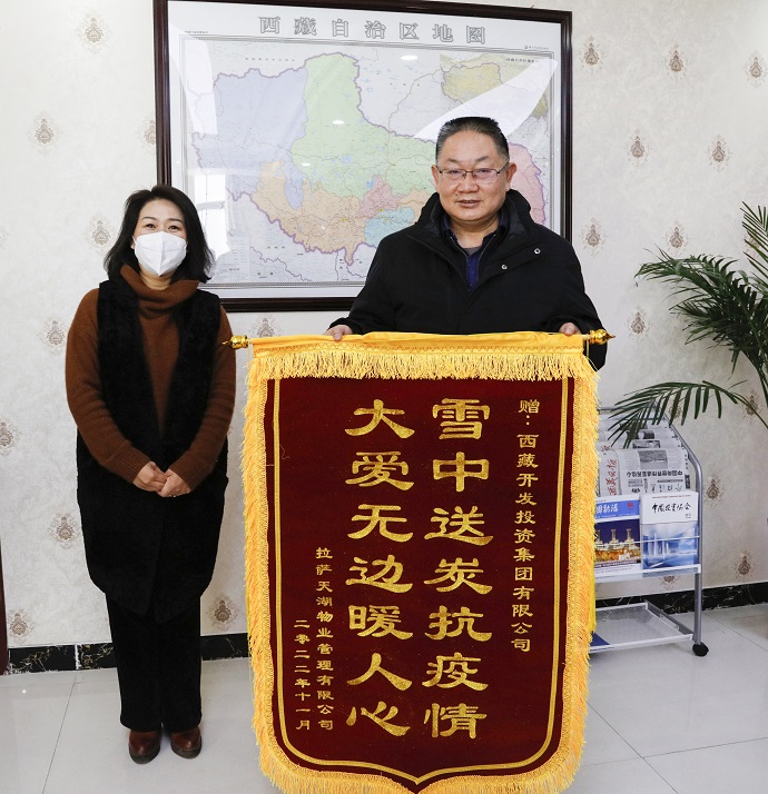 拉薩天湖物業(yè)公司向集團(tuán)公司敬贈(zèng)錦旗