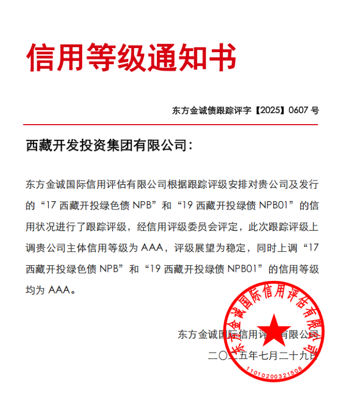 西藏首家!西藏開投集團獲評AAA主體信用等級