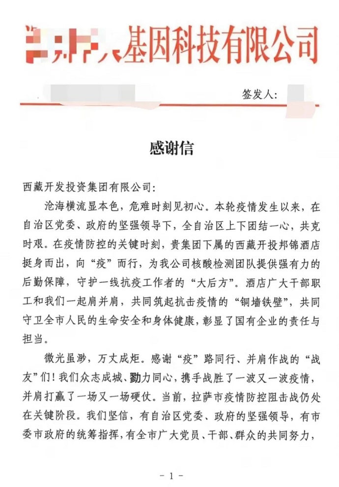 “疫”線傳真丨一封來自某核酸檢測機構總部的感謝信