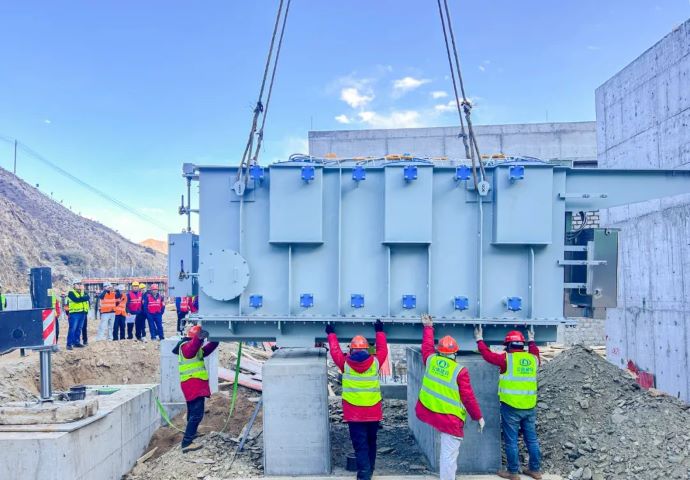 加查縣惹米20MW光儲(chǔ)項(xiàng)目110kV主變壓器吊裝就位