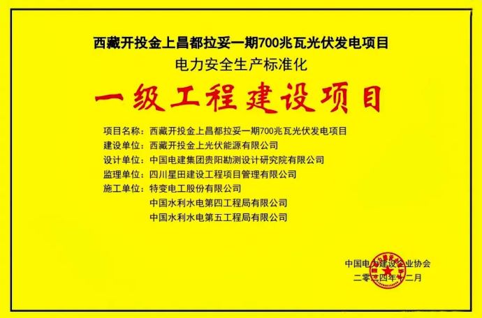 捷報(bào)傳來(lái)丨金上拉妥一期700兆瓦光伏項(xiàng)目獲“一級(jí)工程建設(shè)項(xiàng)目”榮譽(yù)