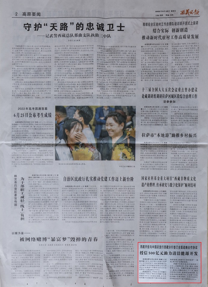 《授信500億元 助力西藏清潔能源開(kāi)發(fā)》