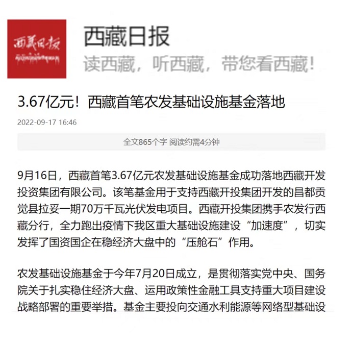 3.67億元!西藏首筆農(nóng)發(fā)基礎(chǔ)設(shè)施基金落地西藏開(kāi)投集團(tuán)