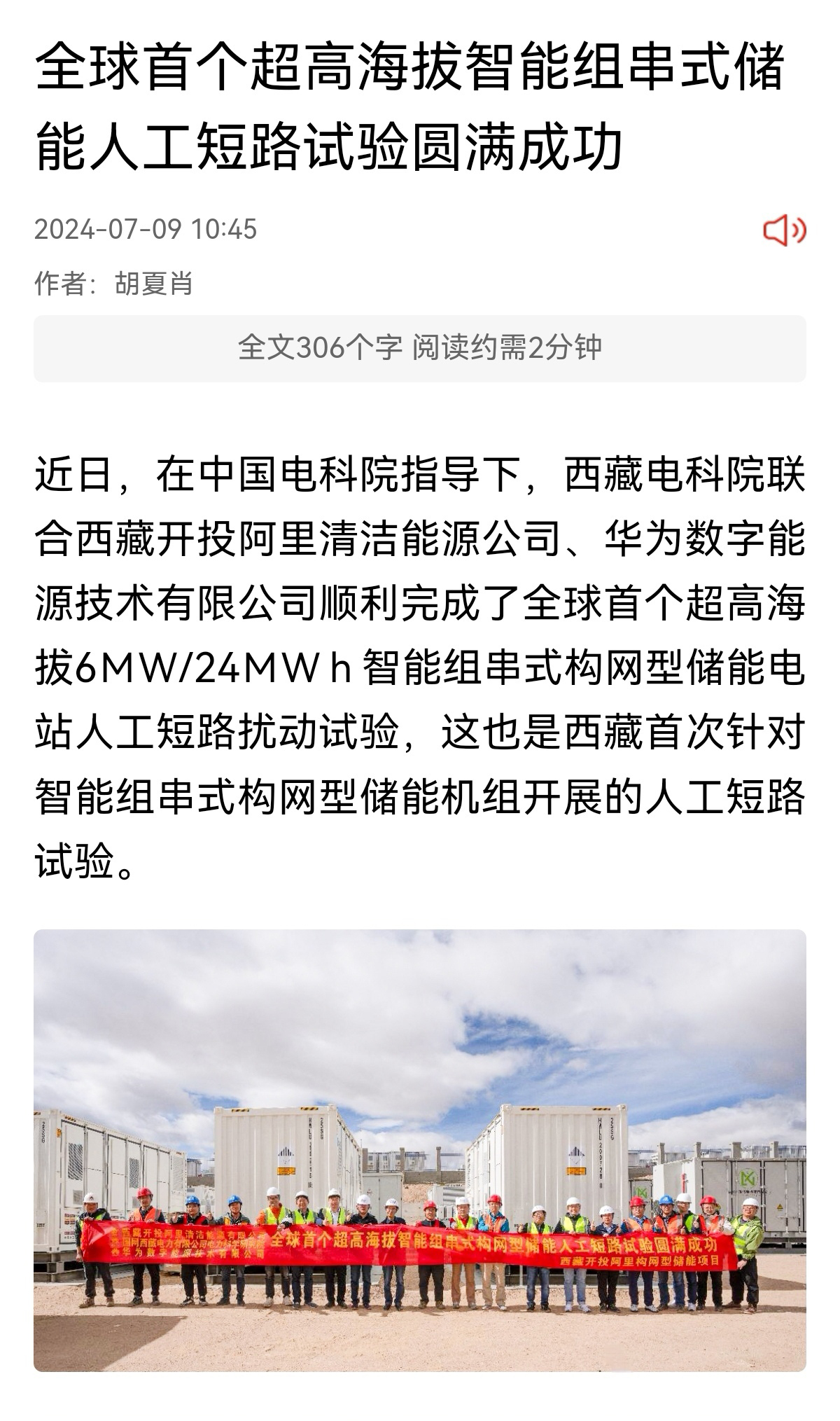 媒體報道丨全球首個超高海拔智能組串式儲能人工短路試驗圓滿成功
