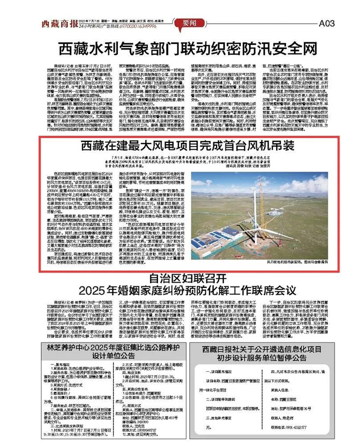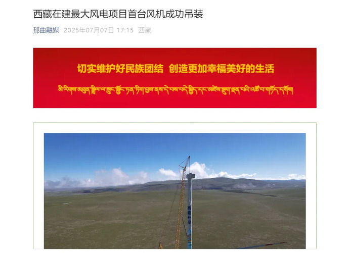 媒體報(bào)道丨西藏在建最大風(fēng)電項(xiàng)目完成首臺(tái)風(fēng)力發(fā)電機(jī)組吊裝