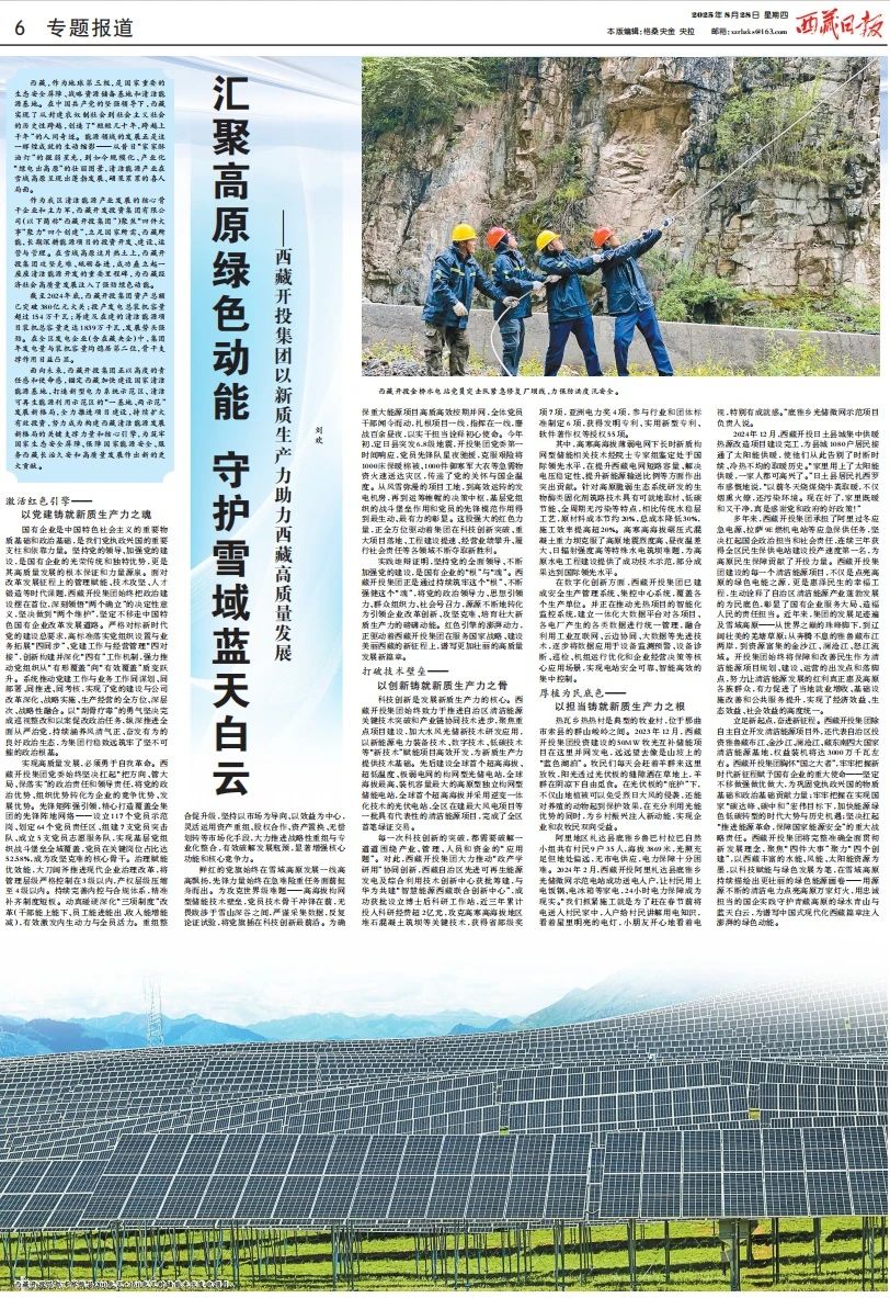 媒體報(bào)道丨匯聚高原綠色動(dòng)能 守護(hù)雪域藍(lán)天白云——西藏開投集團(tuán)以新質(zhì)生產(chǎn)力助力西藏高質(zhì)量發(fā)展