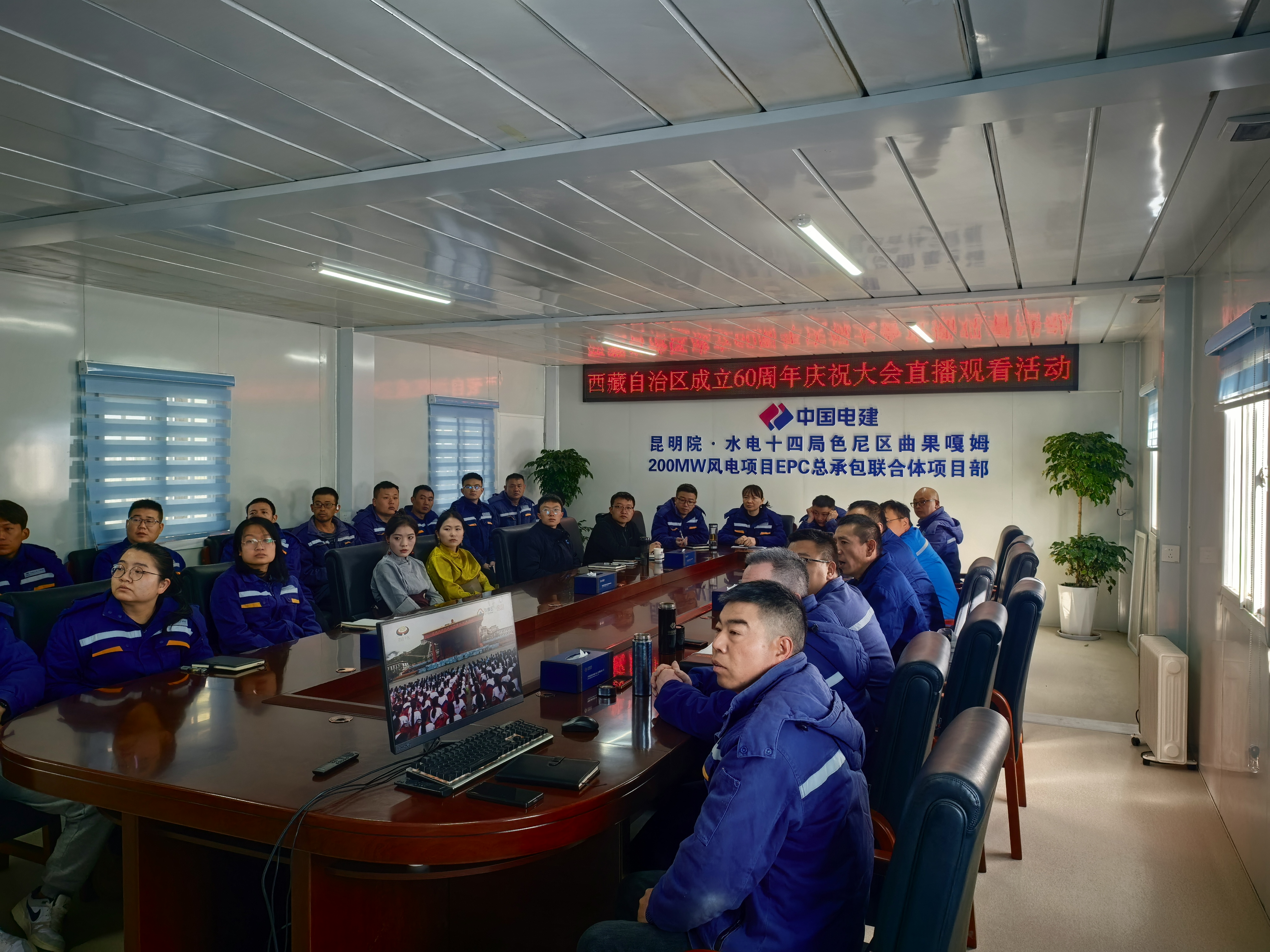 西藏開投色尼區(qū)曲果嘎姆200MW風(fēng)電項(xiàng)目組織觀看西藏自治區(qū)成立60周年慶?;顒娱_幕盛況