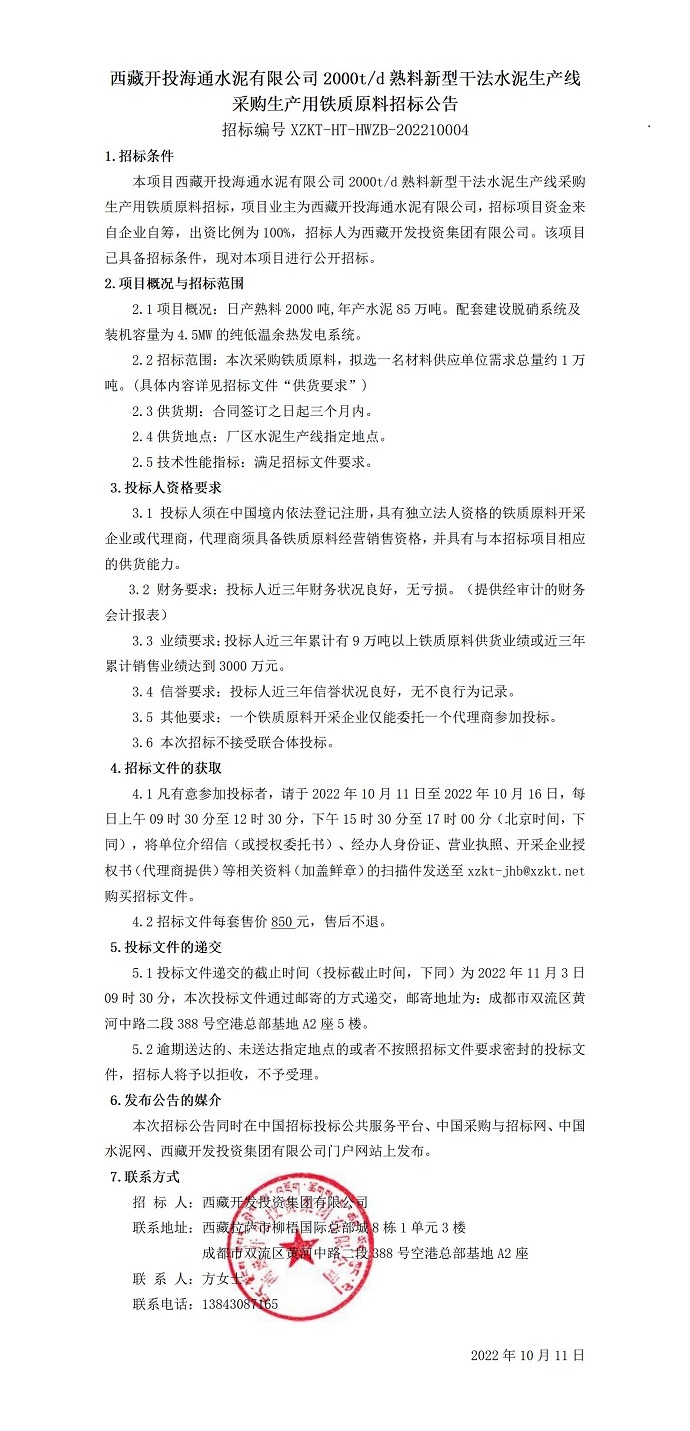 采購(gòu)生產(chǎn)用鐵質(zhì)原料招標(biāo)公告