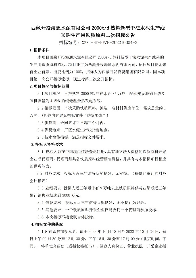 西藏開投海通水泥有限公司 2000t/d 熟料新型干法水泥生產(chǎn)線