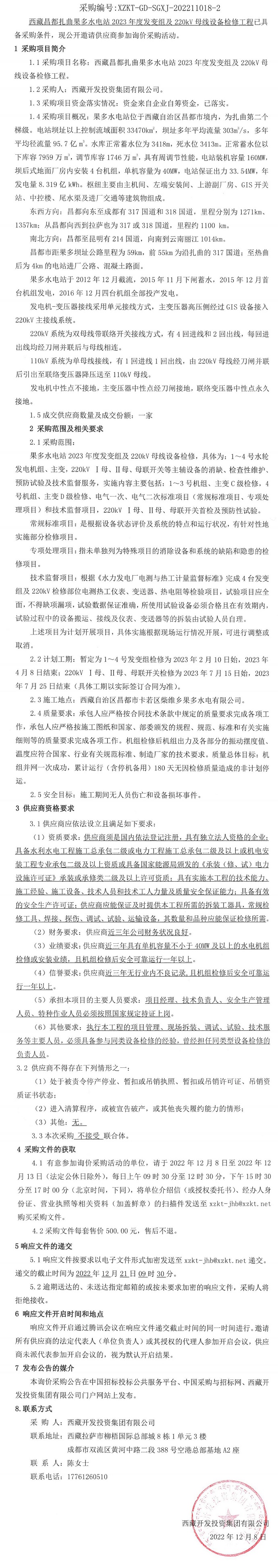 西藏昌都扎曲果多水電站2023年度發(fā)變組及220kV母線設
