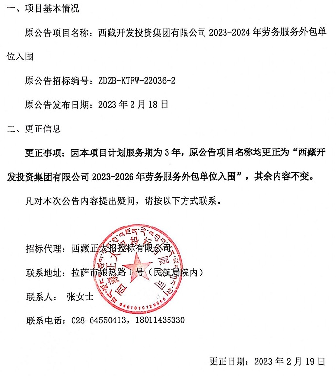 勞務(wù)服務(wù)外包單位入圍更正公告