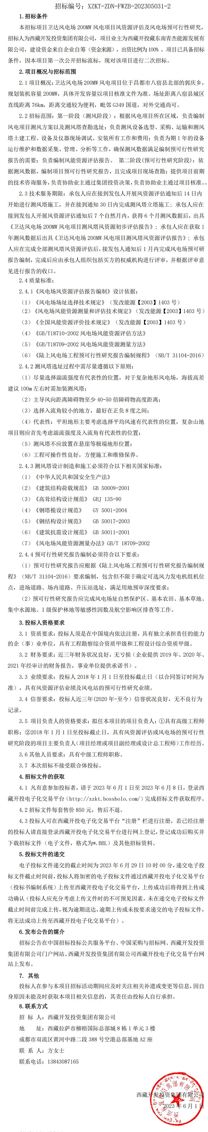 風電場預可行性研究招標公告(第二次)