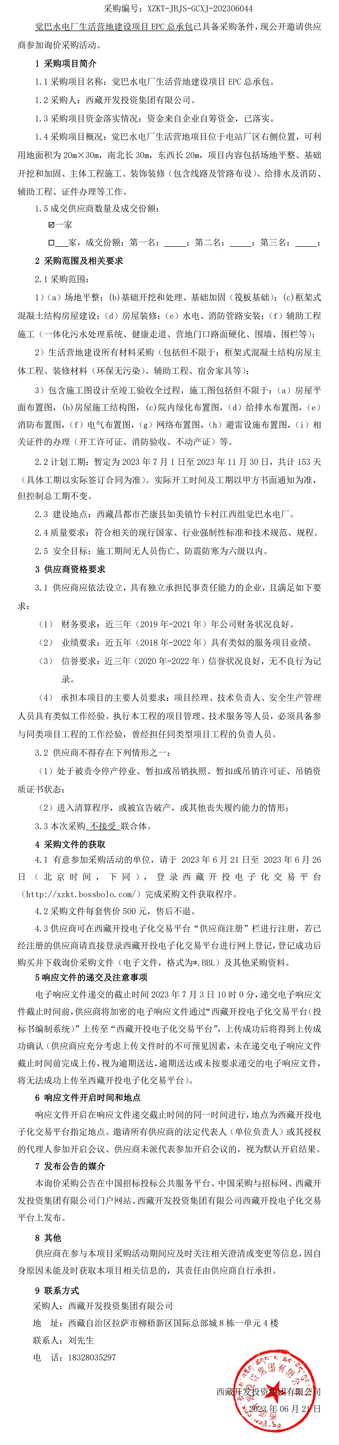 覺(jué)巴水電廠生活營(yíng)地建設(shè)項(xiàng)目EPC總承包詢價(jià)采購(gòu)公告