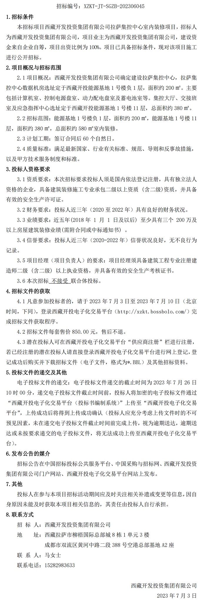 西藏開(kāi)發(fā)投資集團(tuán)有限公司拉薩集控中心室內(nèi)裝修