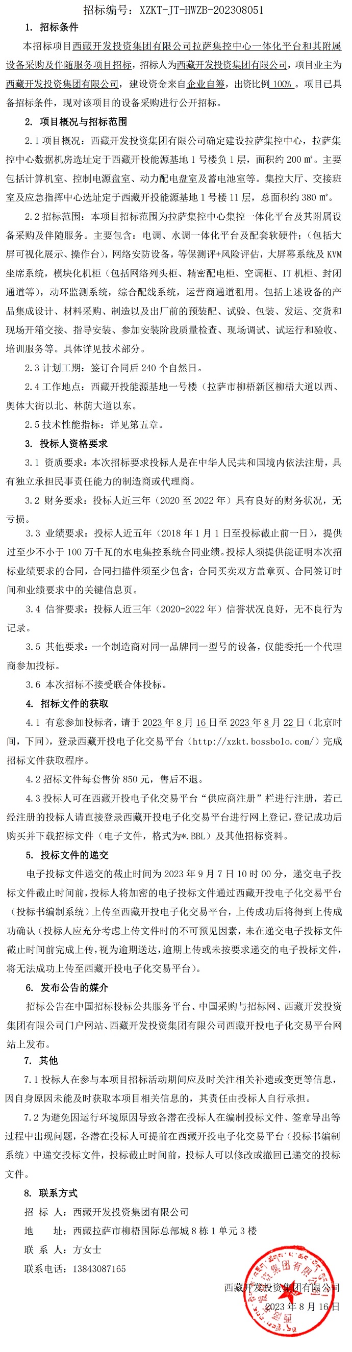 西藏開發(fā)投資集團(tuán)有限公司拉薩集控中心一體化平臺和