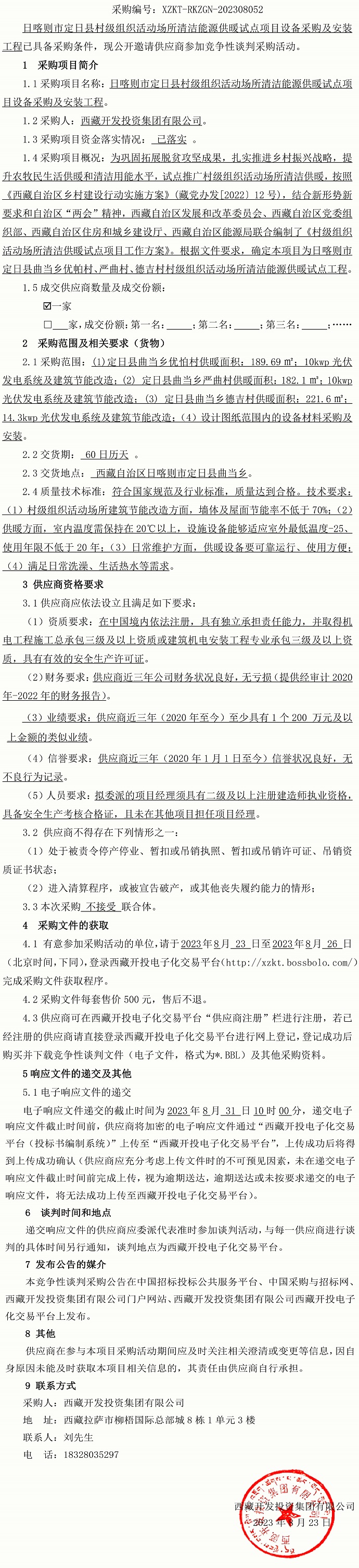 日喀則市定日縣村級組織活動場所清潔能源供暖試點項目 設(shè)備采購及安裝工程競爭性談判采購公告