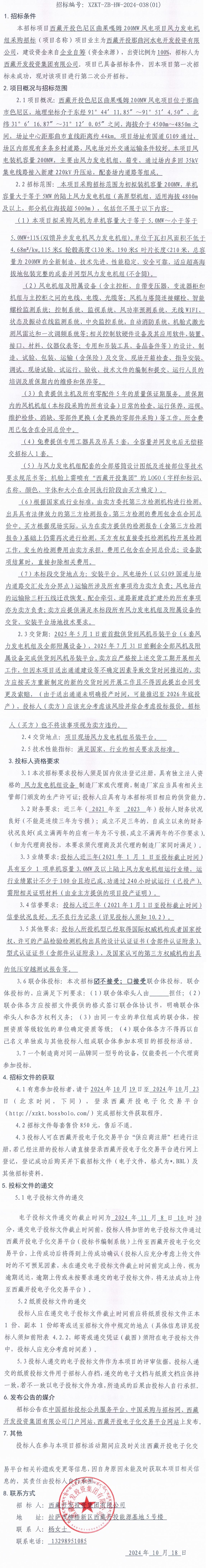 西藏開投色尼區(qū)曲果嘎姆200MW風(fēng)電項(xiàng)目風(fēng)力發(fā)電機(jī)組采招標(biāo)(第二次)招標(biāo)公告
