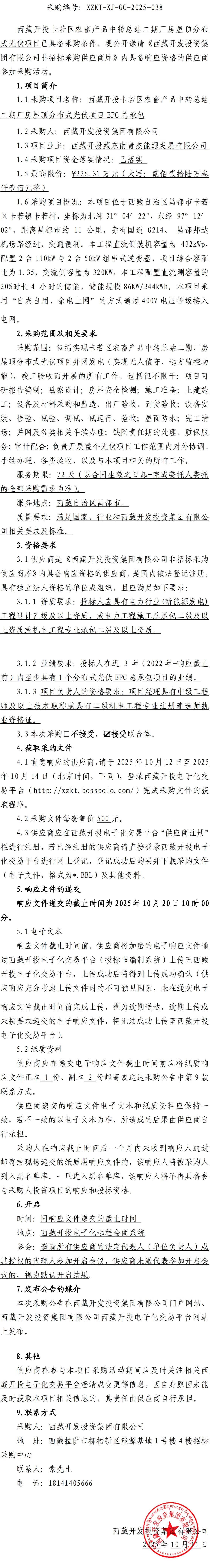 西藏開投卡若區(qū)農(nóng)畜產(chǎn)品中轉(zhuǎn)總站二期廠房屋頂分布式光伏項目詢比采購公告