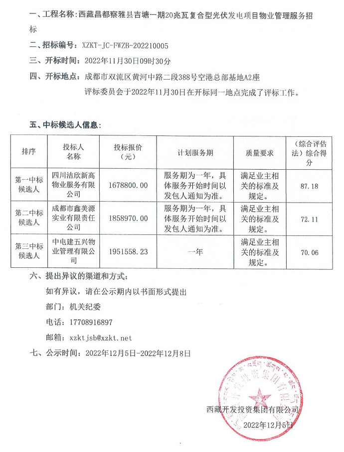 中標(biāo)候選人公示