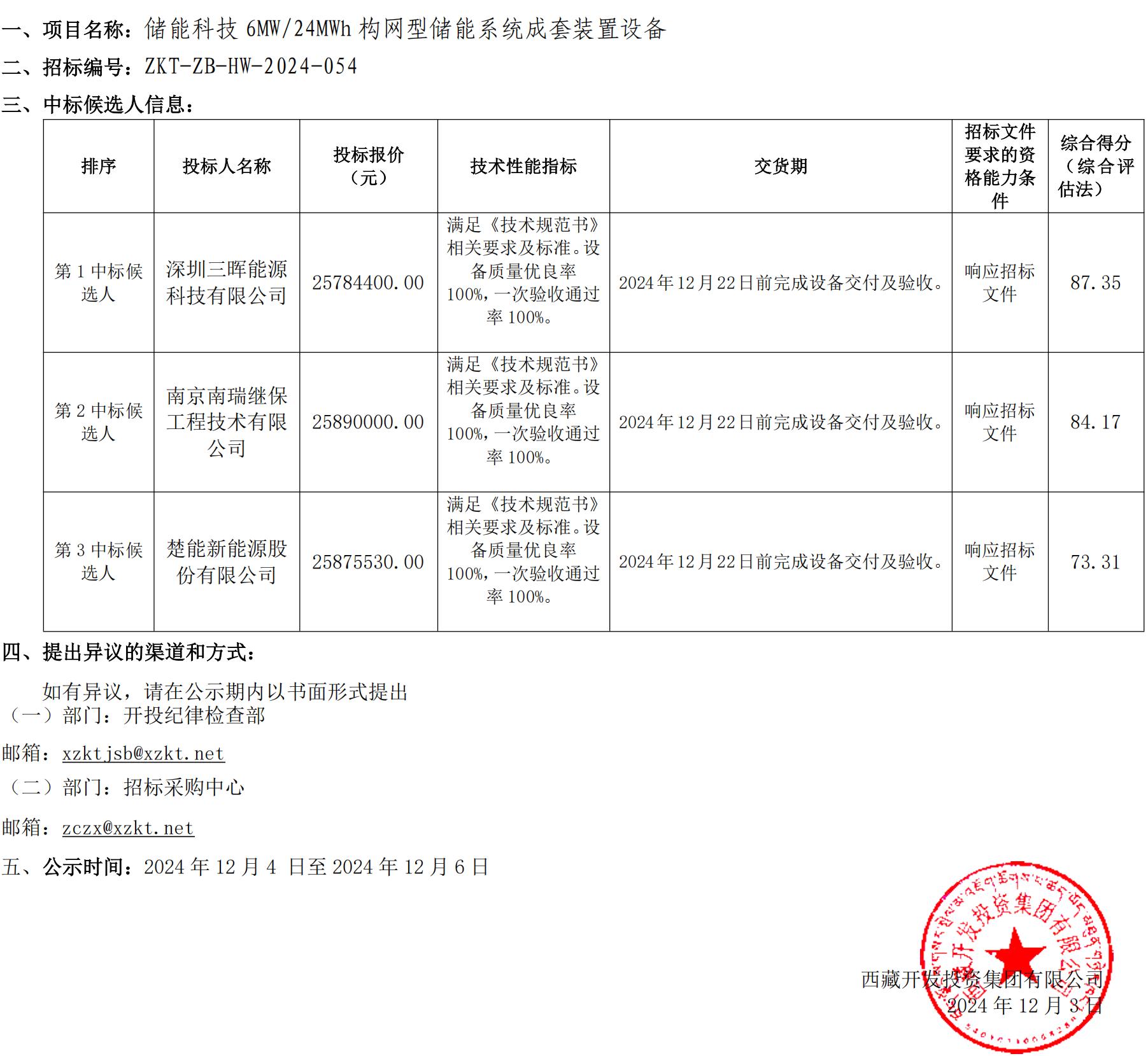中標(biāo)候選人公示